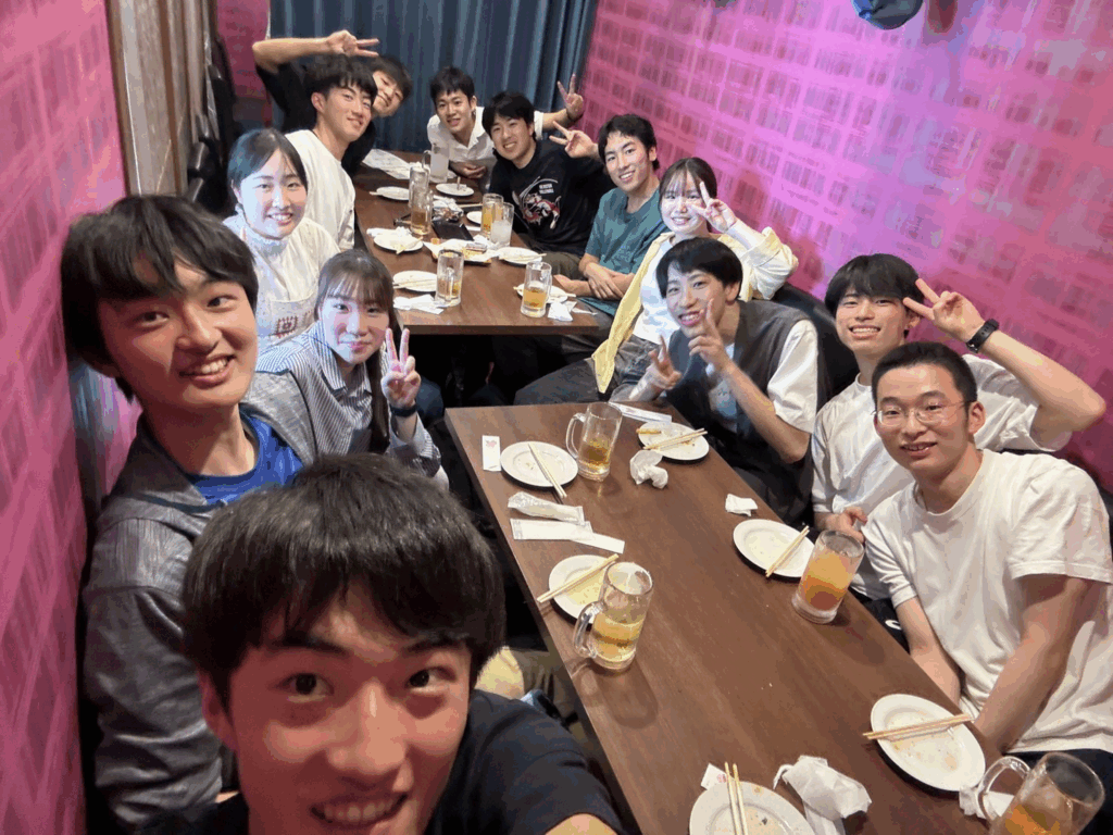 練習後は、駒場東大駅前から下北沢方面や渋谷方面など、帰る方向が同じ部員同士で学年関係なくご飯に行きます。 そして、1年生はもちろん先輩に奢ってもらえます!